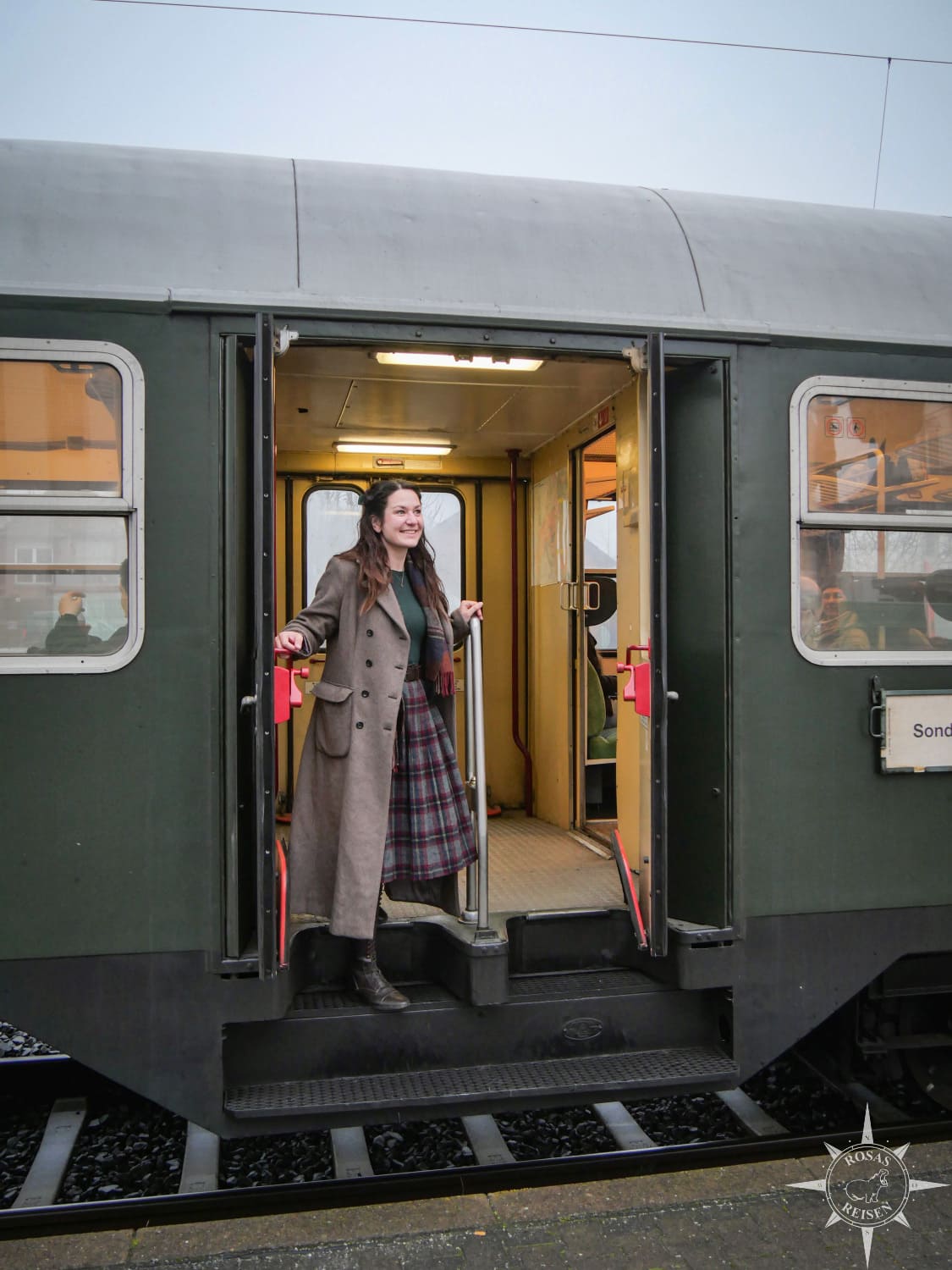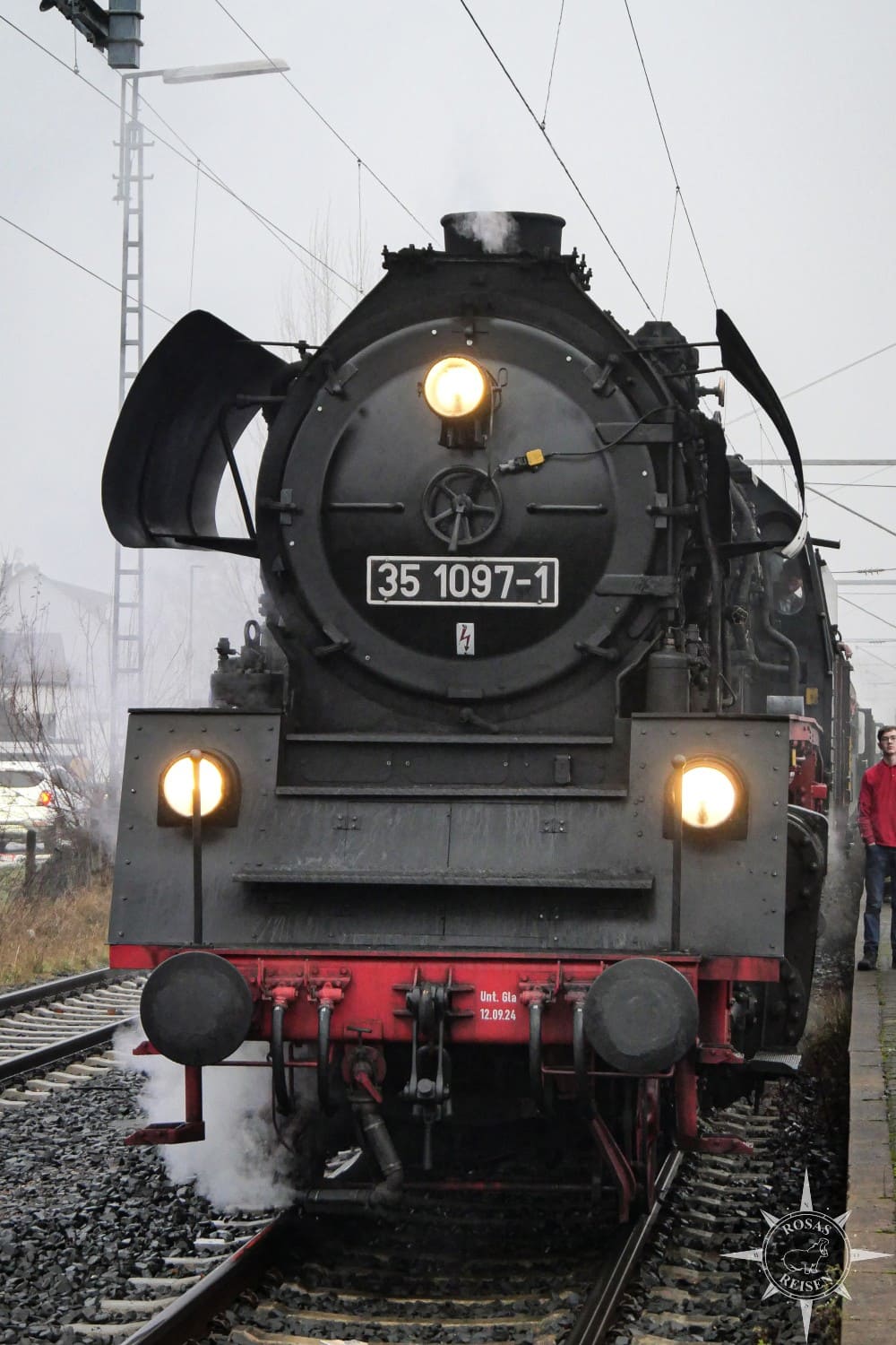 Nun ja, zugegeben, nicht ganz. Es ist “nur” Julchen. NUR?! Nein, denn Julchen ist das Herz der Eisenbahnfreunde Treysa. Eine Dampflok aus dem Jahr 1959, die einzige aus ihrer Produktionslinie, die noch fahrtüchtig ist, die allein mit ihrer Geräuschkulisse Gänsehaut verursacht. Zunächst hört man nur das weit entfernte Pfeifen, dass wie ein Ruf der Vergangenheit durch die Nebel hallt, dann taucht sie stampfend daraus auf. Beim Anfahren lässt sie ein laut vernehmliches Zischen hören, bevor ihr rhythmisches Tuff-Tuff-Tuff wieder einsetzt. Hach, ich bin verliebt! Bis über beide Ohren!