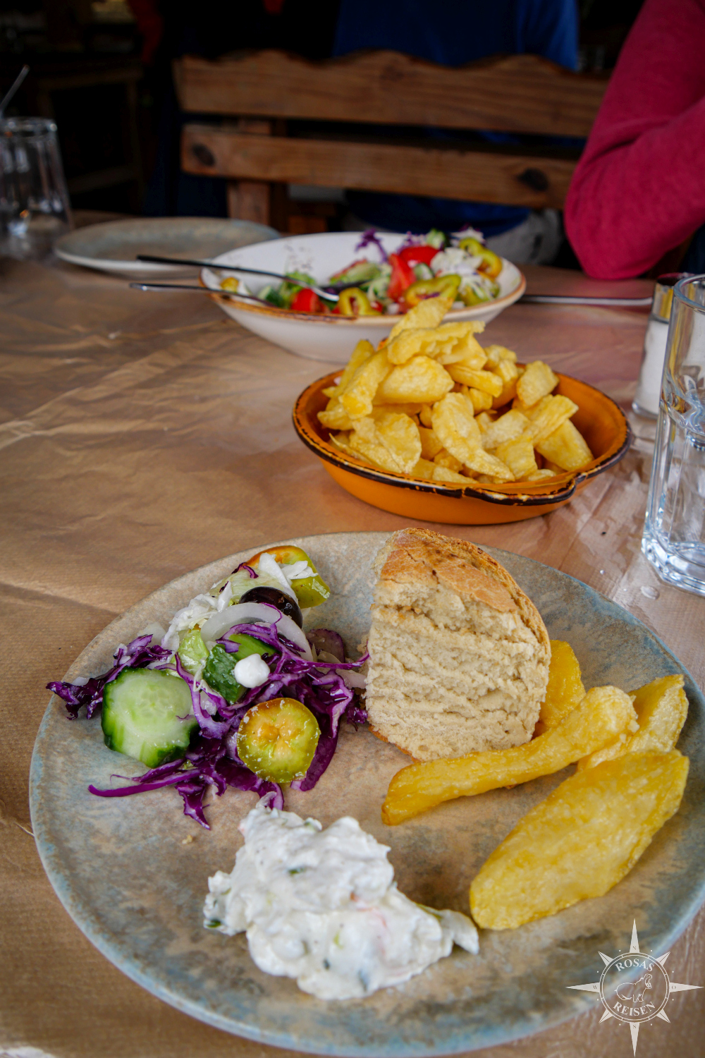 Klar, die Fleischbällchen lade ich mir nicht auf den Teller, aber das frisch gebackene Maisbrot, die Salate, die Dips und der Tzatziki landen dort genauso wie das überbackene Gemüse und die mit Feta und Spinat gefüllten Blätterteigtaschen. Die albanische Küche ist herzhaft, bodenständig und stark von der osmanischen, mediterranen und balkanischen Küche geprägt. Viele Gerichte basieren auf einfachen, regionalen Zutaten wie Gemüse, Joghurt, Käse, Olivenöl und Kräutern.