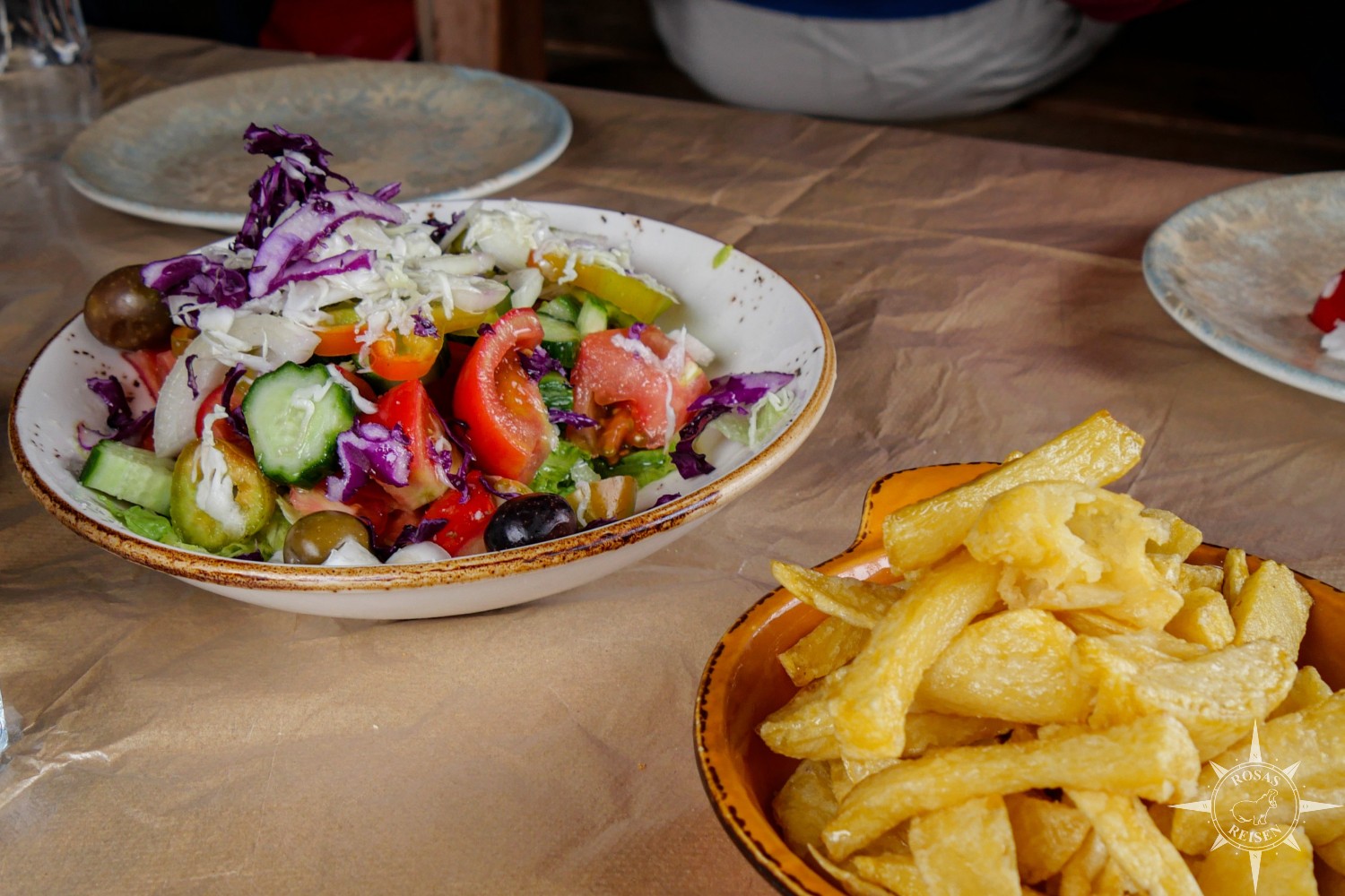 Aber ich galoppiere voraus, denn noch sitzen wir ja gar nicht in den Sätteln unserer E-Bikes. Stattdessen lassen wir unseren ersten Abend in Tirana in einem kleinen Restaurant “Vila Ferdinand” im Botschaftsviertel ausklingen. Es gibt landestypische Speisen, und ich bin überrascht, wie viel davon vegetarisch ist.