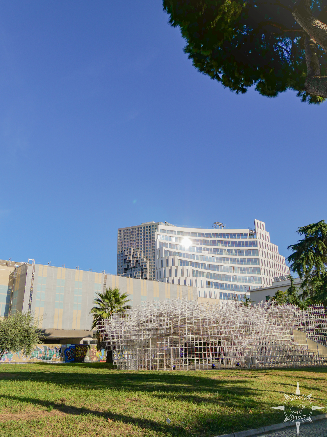Tirana lässt sich gut zu Fuß entdecken, und wir laufen einfach planlos drauflos und schauen, wo es uns hintreibt. Wir schlendern den Bulevardi Gjergi Fishta entlang bis zum Parku Rinia. Direkt gegenüber befindet sich ein seltsames Metallkonstrukt: „The Cloud“, eine zeitgenössische Kunst- und Architekturinstallation des japanischen Architekten Sou Fujimoto.