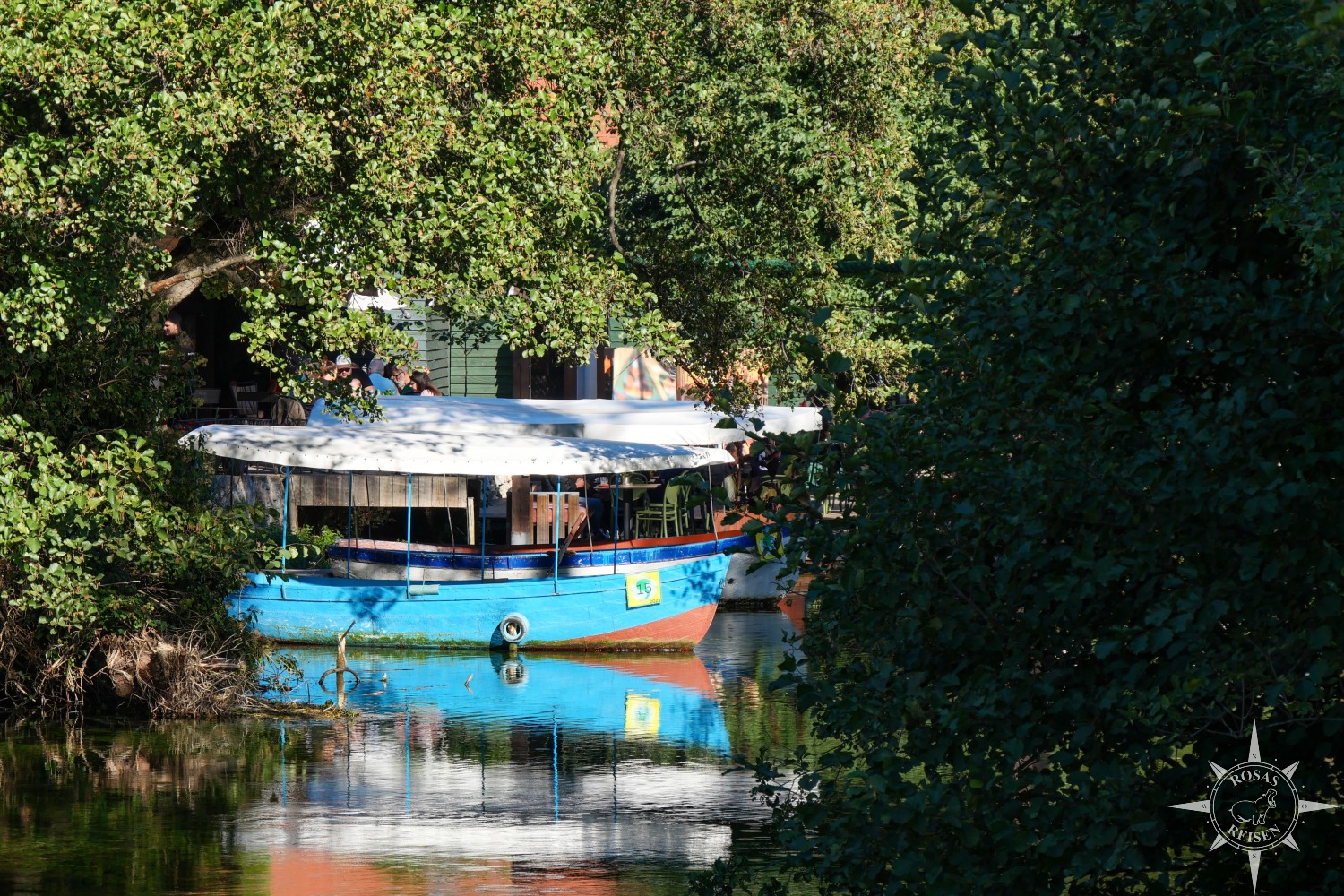 Eine der beiden Quellen, die den See speisen, befindet sich ebenfalls hier. Das Wasser stammt aus einem höher gelegenen See jenseits der Bergkuppen, die sich vor dem nordmazedonischen Himmel abzeichnen. Dort versickert es und kommt dann hier wieder an die Oberfläche. Die zweite Quelle liegt in der Nähe unserer Unterkunft.