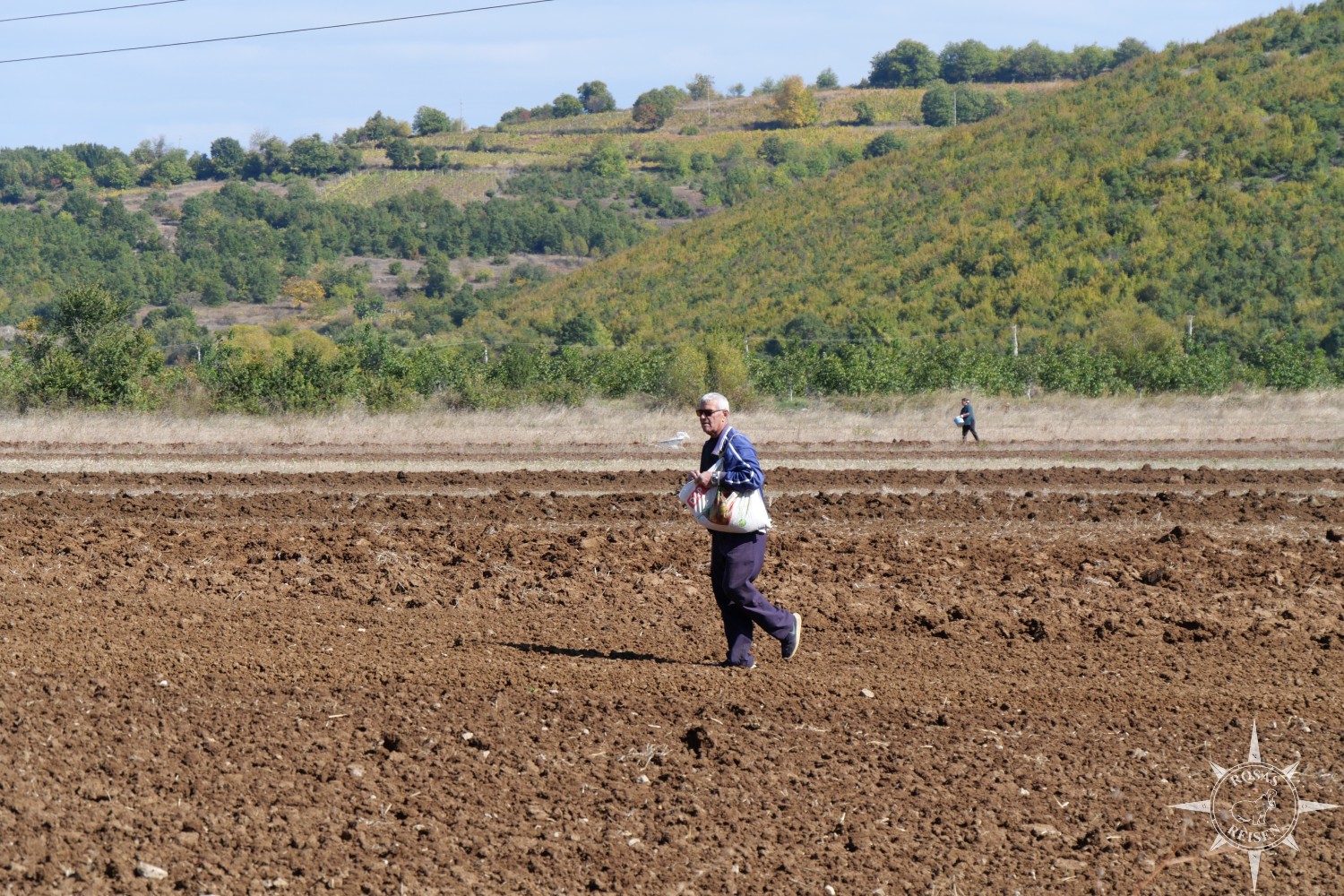 Streunende Tiere werden mir in den nächsten Tagen wieder und wieder und wieder begegnen und sie werden der Grund sein, warum Albanien mir ein wenig das Herz bricht. Doch es hat auch Pflaster mitgebracht und während die anderen noch ihre Wasserflaschen verstauen (oder feststellen, dass sie keine dabei haben), radel ich schon einmal den Weg auf und ab und beobachte den Mann, der mit einem über die Schulter geschlungenen Beutel das Feld abgeht und mit rückartigen, routinierten Bewegungen Saat ausbringt.