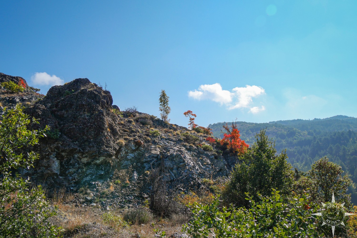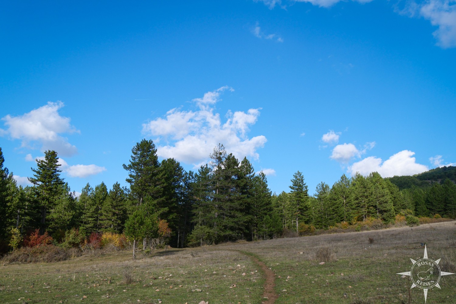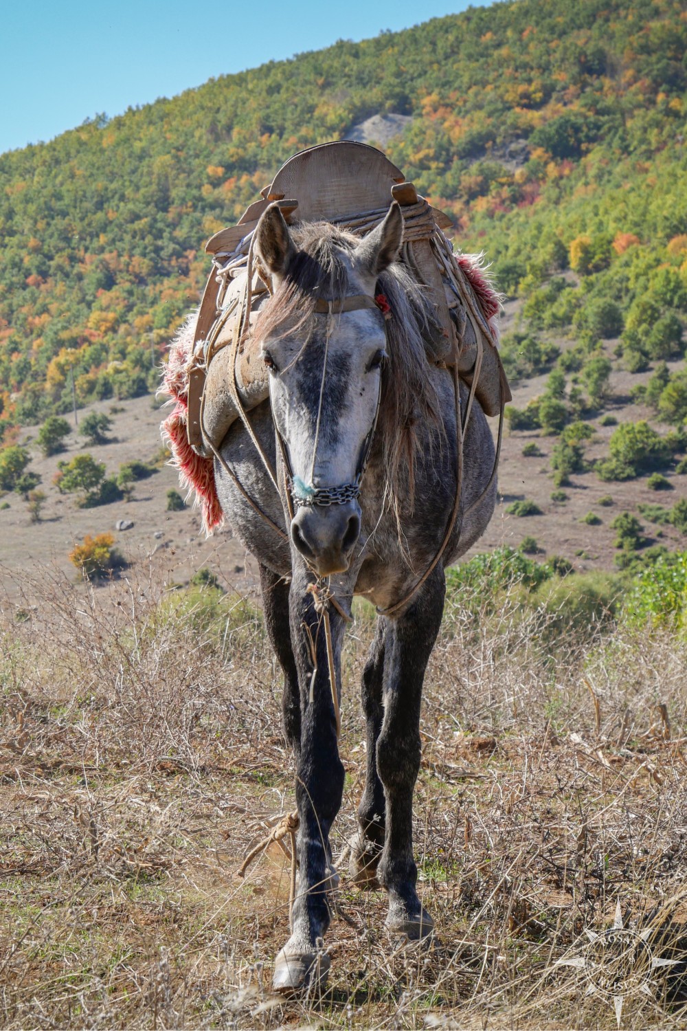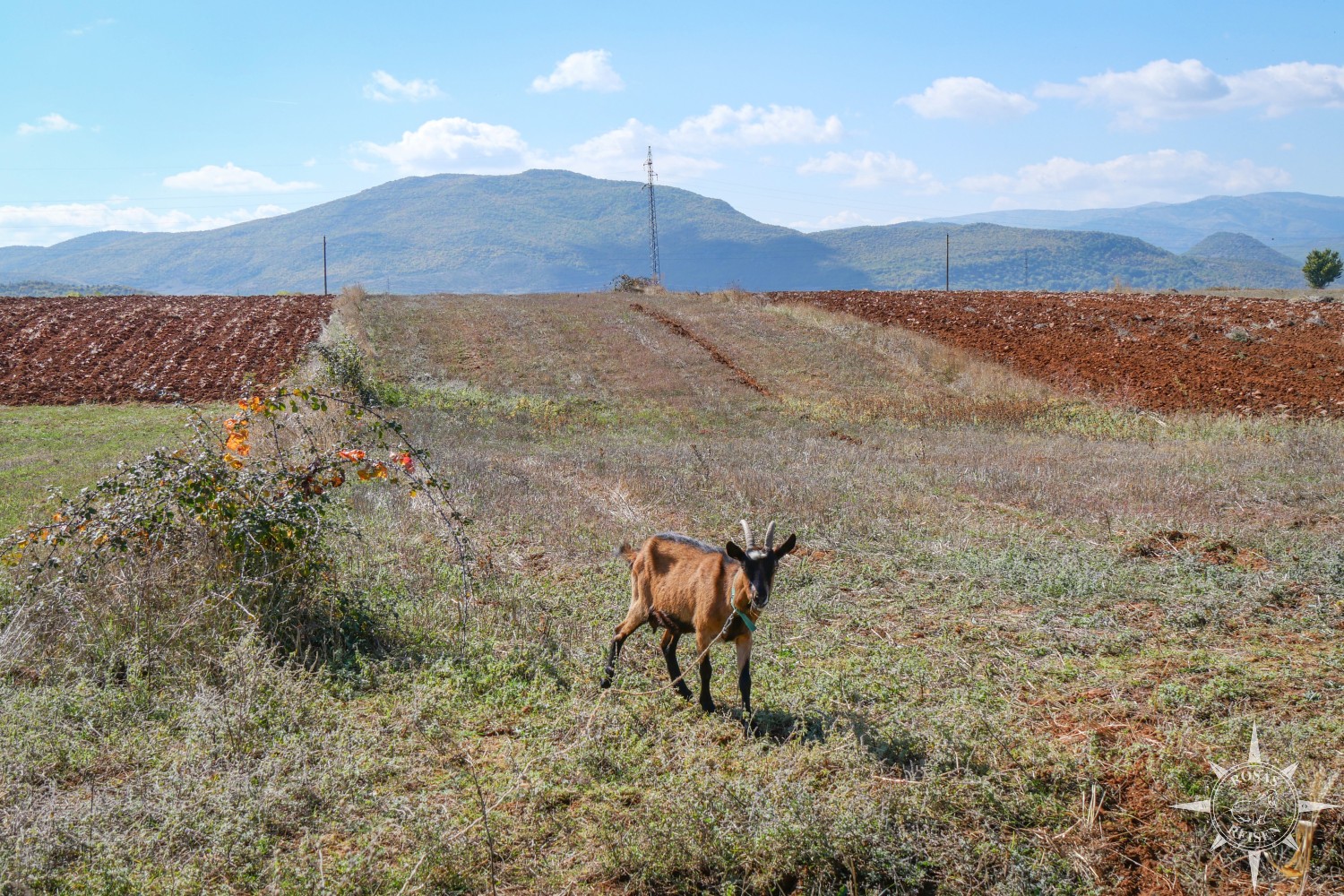 Liest man meine Artikel über Tirana, den Ohridsee und Korça, so bemerkt man vielleicht, dass Albanien mein Herz noch nicht im Sturm erobert hat. Doch heute, heute ist der Tag, an dem sich das ändert, denn heute fahren wir mit unseren E-Rädern in die Berge! Wir treten in die Pedale, die Motoren der E-Bikes surren leise, und jeder Tritt bringt uns ein Stück weiter hinein in eine Landschaft, die wie gemalt wirkt: gelbe, rote und orangefarbene Blätter flirren im Licht, während die Berge im Hintergrund in Blau und Grau schimmern. Heute werden wir Albanien neu erleben, auf Schotterwegen, durch stille Dörfer und über sonnenbeschienene Bergstraßen, die wir uns mit Pferden, Ziegen und neugierigen Blicken der Einheimischen teilen.