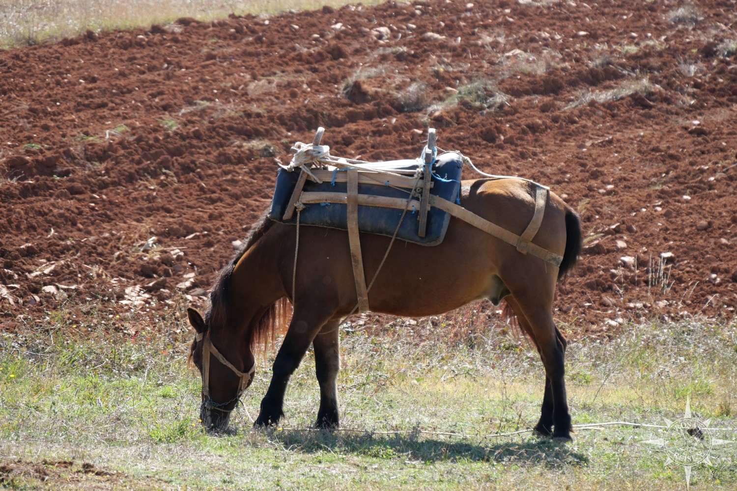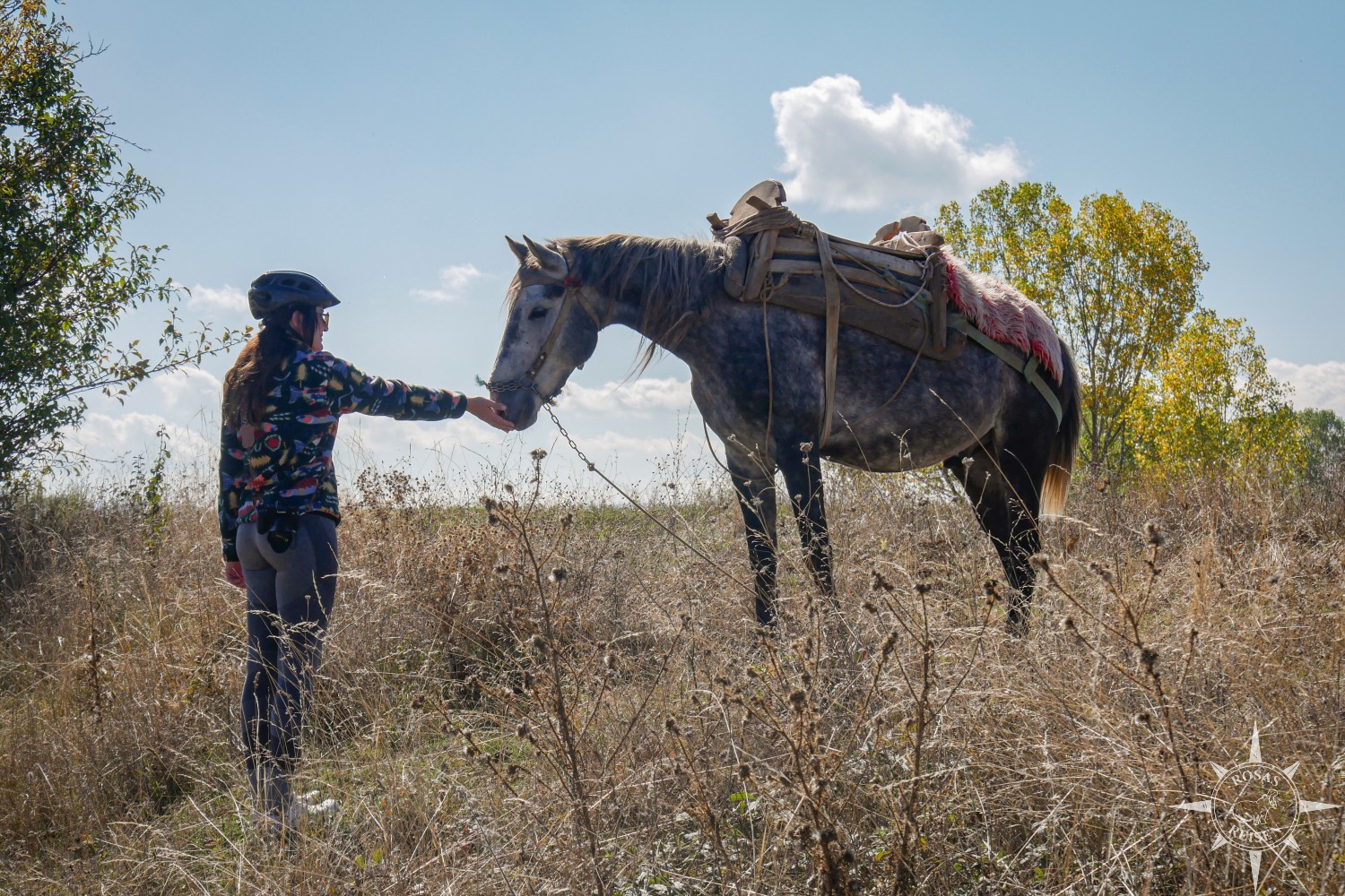 Mein Blick gilt, wie schon an den letzten Tagen, immer wieder den Tieren. Besonders häufig begegnen uns heute Pferde und Ziegen, die vielerorts noch fester Bestandteil der kleinbäuerlichen Landwirtschaft sind. Ein Pferd hat es mir besonders angetan, und ich kann nicht anders, als abzusteigen und die samtig weiche Nase zu streicheln.