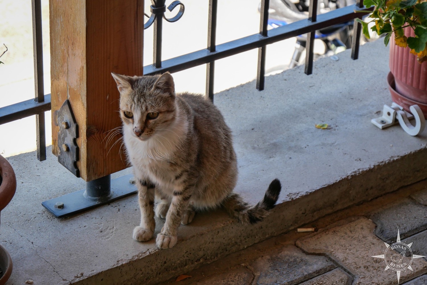 Meine Fleischplätzchen überlasse ich einem Mitreisenden, auch wenn es zu meinen Füßen hoffnungsvoll maunzt. Wenn ich nur könnte, kleine Katze … wenn ich dir nur wirklich helfen könnte. Doch Nick versichert mir, dass zumindest dieser kleine Tiger regelmäßig etwas zu fressen bekommt.