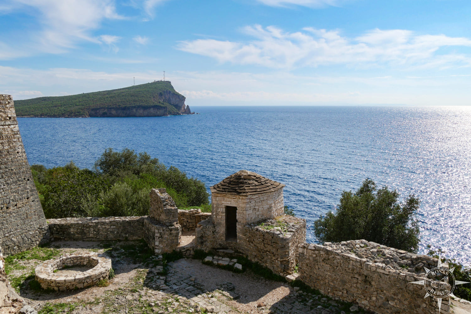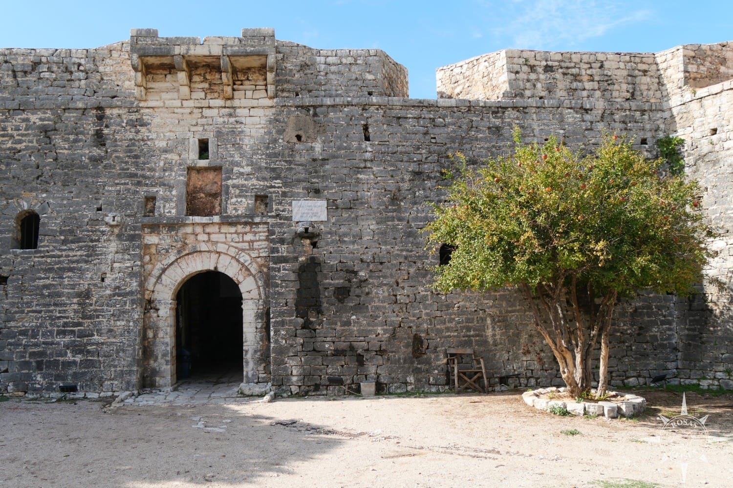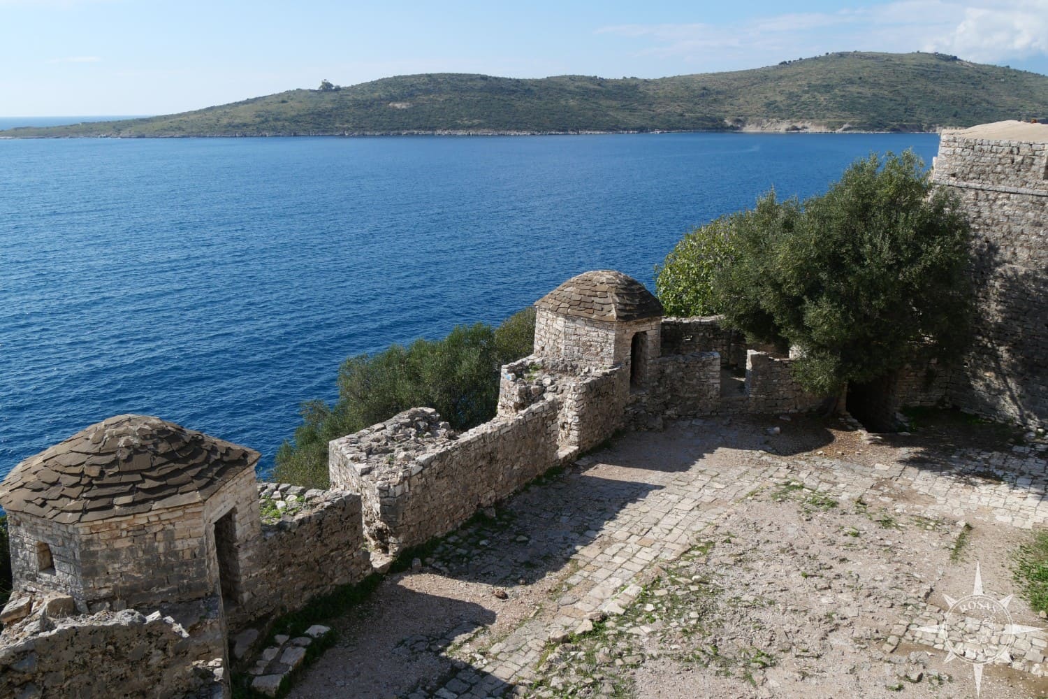 Auf einer schmalen Landzunge innerhalb der Bucht steht die Festung, die Ende des 18. Jahrhunderts unter Ali Pasha von Tepelena errichtet wurde. Genau, den kennen wir noch aus dem letzten Artikel über Butrint! 🙂 Nachdem er die ionische Küste von dort bis Vlora kontrollierte, ließ er mehrere Befestigungen bauen, um Handelsrouten und strategische Küstenpunkte zu sichern.