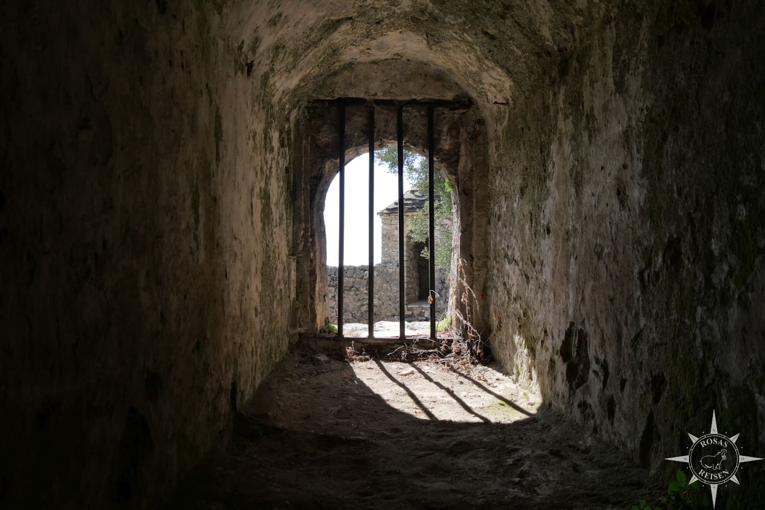 Die Anlage besitzt einen dreieckigen Grundriss mit bastionsartigen Ecken und einem Innenhof, der sich nach Westen öffnet. Im Inneren befinden sich gewölbte Hallen, Lagerräume und Innenhöfe; Steintreppen führen auf die Terrasse. Durch die vielen Fenster und Durchbrüche bieten sich immer wieder wunderschöne Aussichten und Motive und ich kann mich nicht beherrschen.