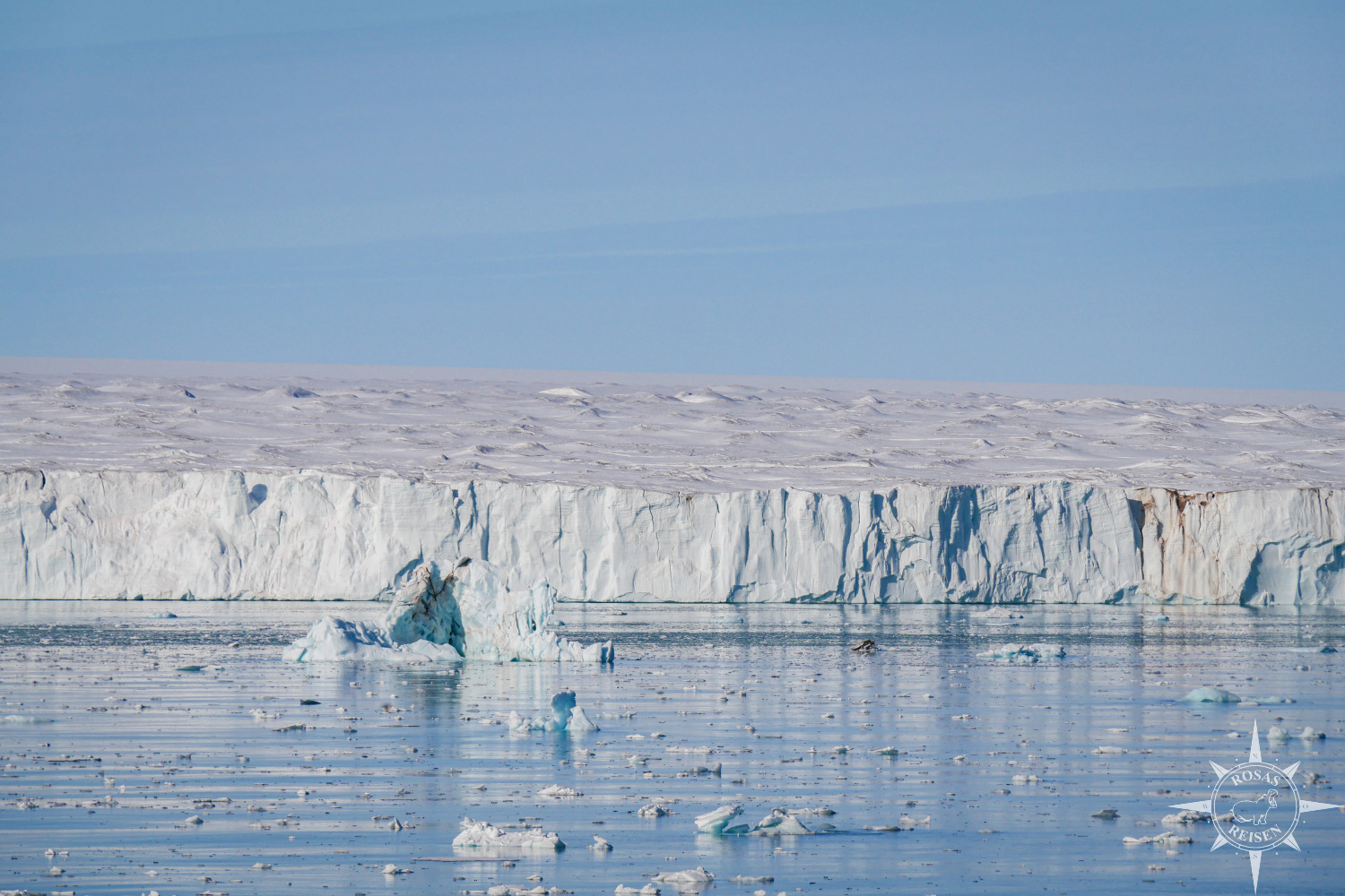 Der Bråsvellbreen ist ein mächtiger Auslassgletscher an der Südostküste von Nordaustlandet, der zweitgrößten Insel des Spitzbergen-Archipels (Svalbard). Er gehört zur riesigen Austfonna-Eiskappe, die mit einer Fläche von etwa 8.000 Quadratkilometern zu den größten Eismassen der Nordhalbkugel zählt. Die Gletscherfront des Bråsvellbreen, die sich fast 200 Kilometer entlang der Küste erstreckt und damit eine der längsten zusammenhängenden Eiswände außerhalb der Antarktis bildet, erstreckt sich endlos vor uns, so weit das Auge reicht.
