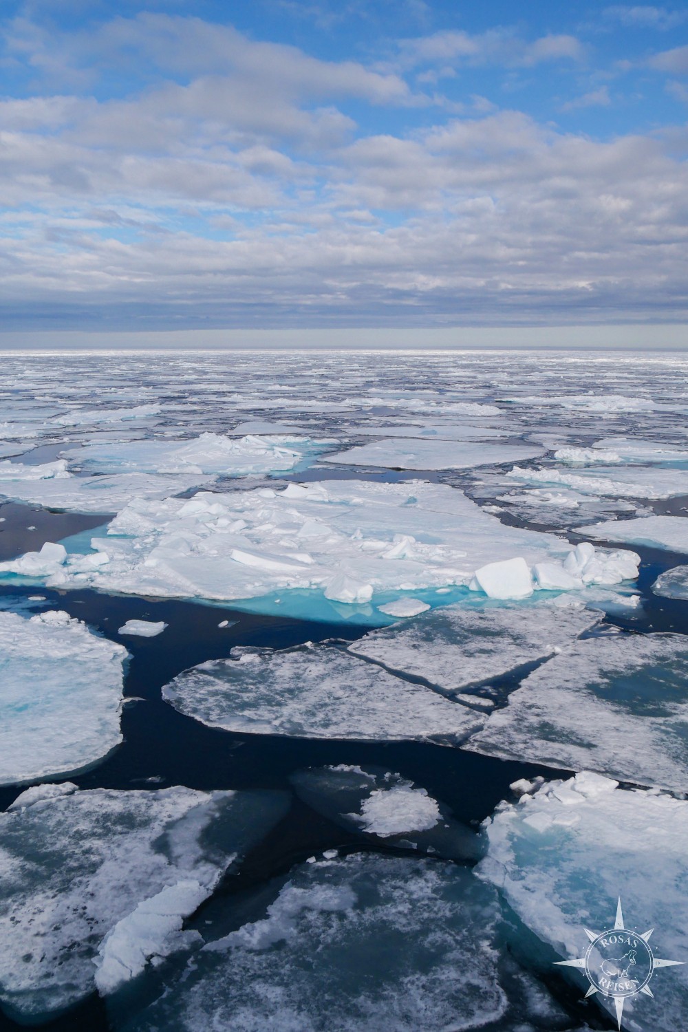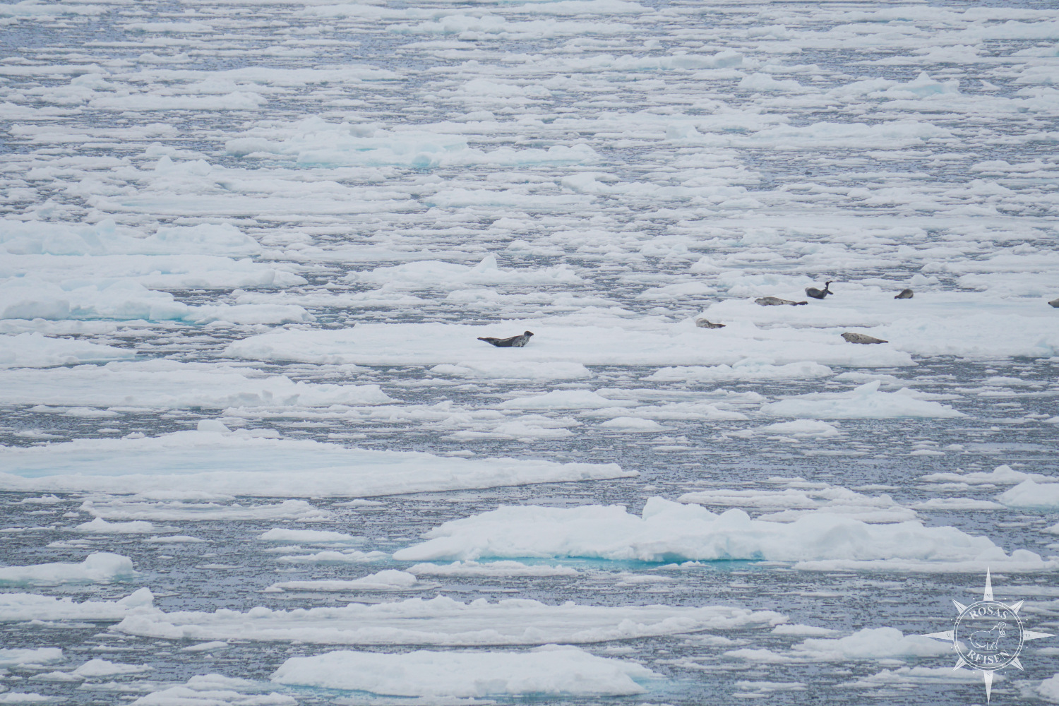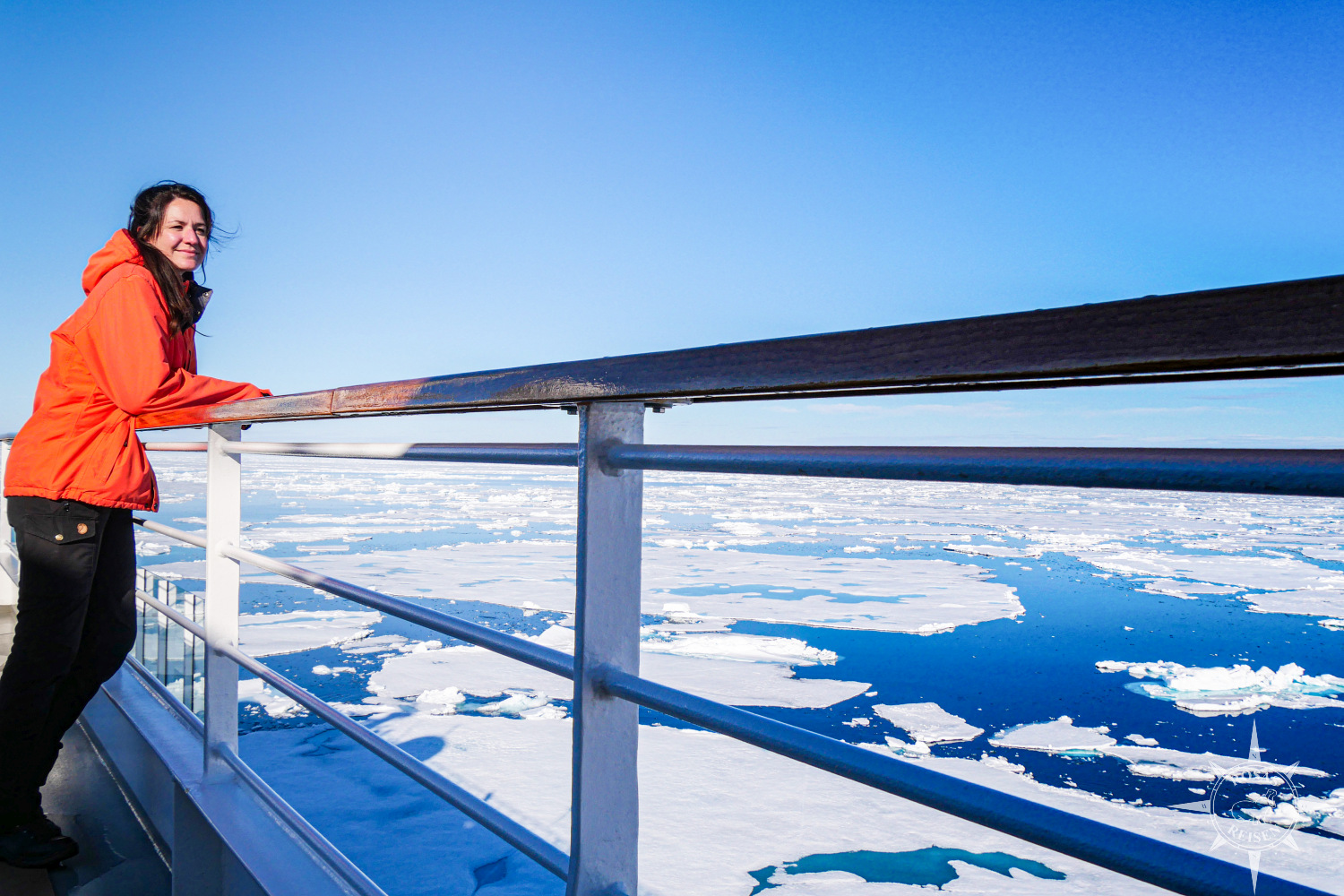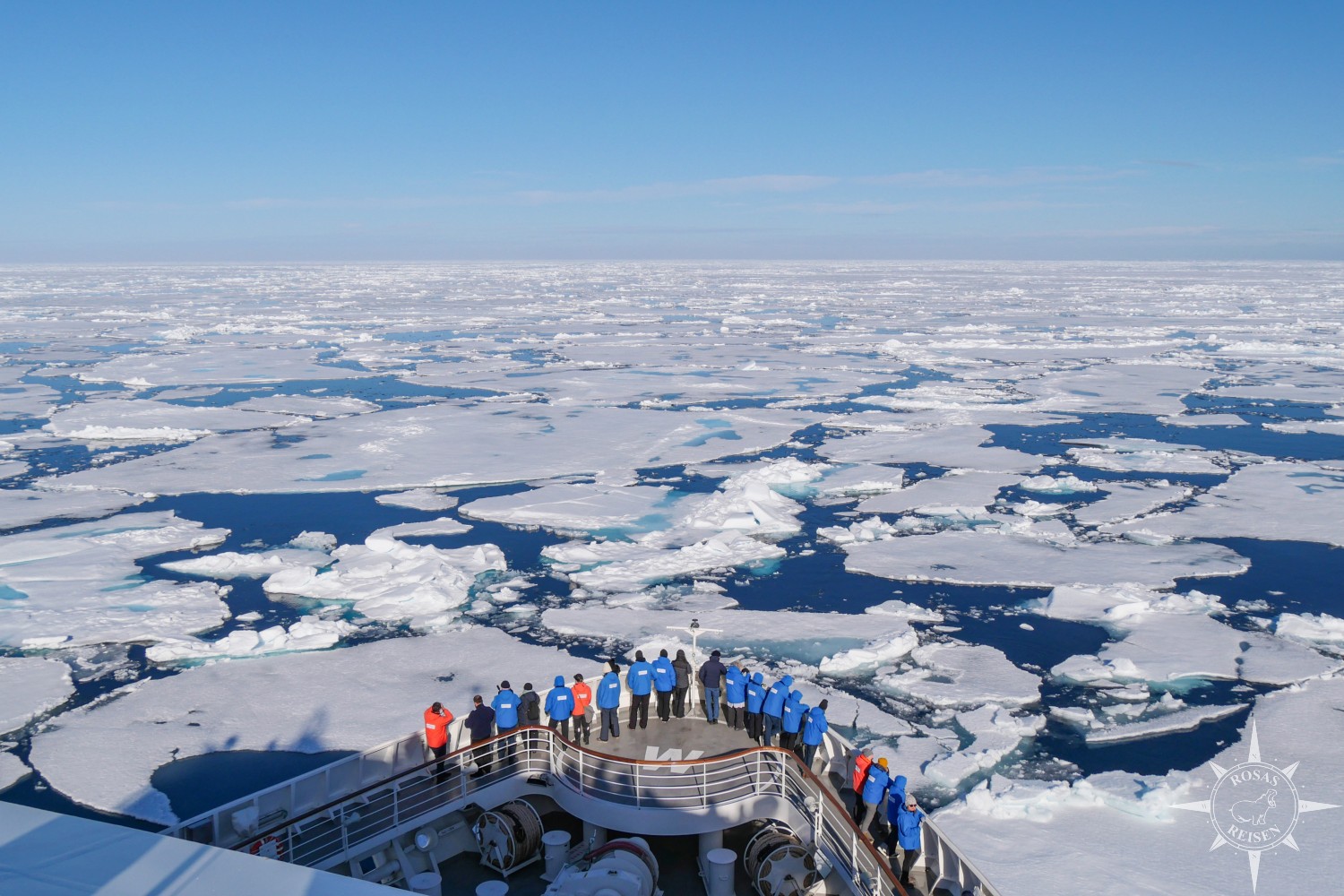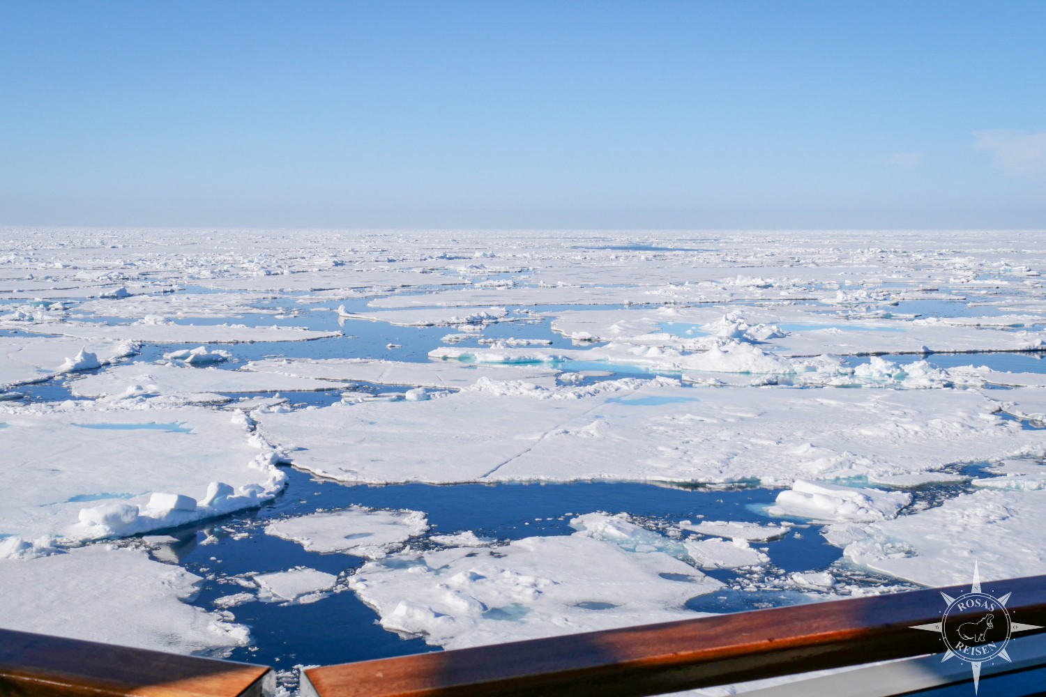 Es wird Zeit. Zeit, einen ganz besonderen Punkt unserer Spitzbergen-Umrundung anzusteuern und zwar den nördlichsten. Es geht ins Packeis! Wir lassen das Archipel hinter uns und navigieren mit dem Schiff in das riesige Eisfeld, das den Nordpol umgibt. Welchen Breitengrad werden wir erreichen? Ab wann wird das Eis zu dicht? Werden wir Robben sehen und vielleicht sogar Eisbären? Die Aufregung hüpft im meinem Bauch und macht mich ganz hibbelig.