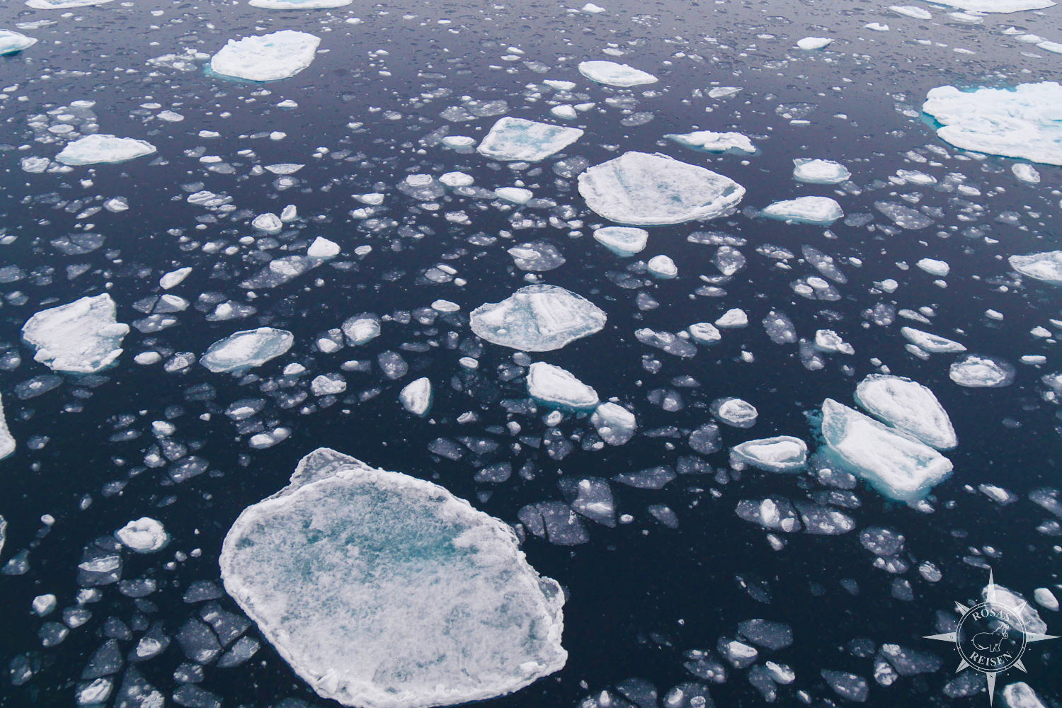 Wie soll ich das Gefühl beschreiben? Wie fühlt es sich an, in diese stille, aber so lebendige Welt einzutauchen? Diese ungläubige Faszination, wenn man umgeben ist, von einem Teppich aus Eisschollen, die auf dem Wasser treiben. Das Schauspiel der Farben, mal nebelig grau und weiß, mal strahlend blau oder in den schönsten Pastelltönen. Die Ruhe, die über dem Packeis liegt, die stillen Andacht der überwältigten Passagiere, die gebannt an der Reling stehen und schauen. Geräusche machen nur Schiff und Eis in einem immer währenden Tanz, aus Schieben, Drücken, Gleiten. Doch selbst die ständige Bewegung tut der allumfassenden Friedlichkeit keinen Abbruch.