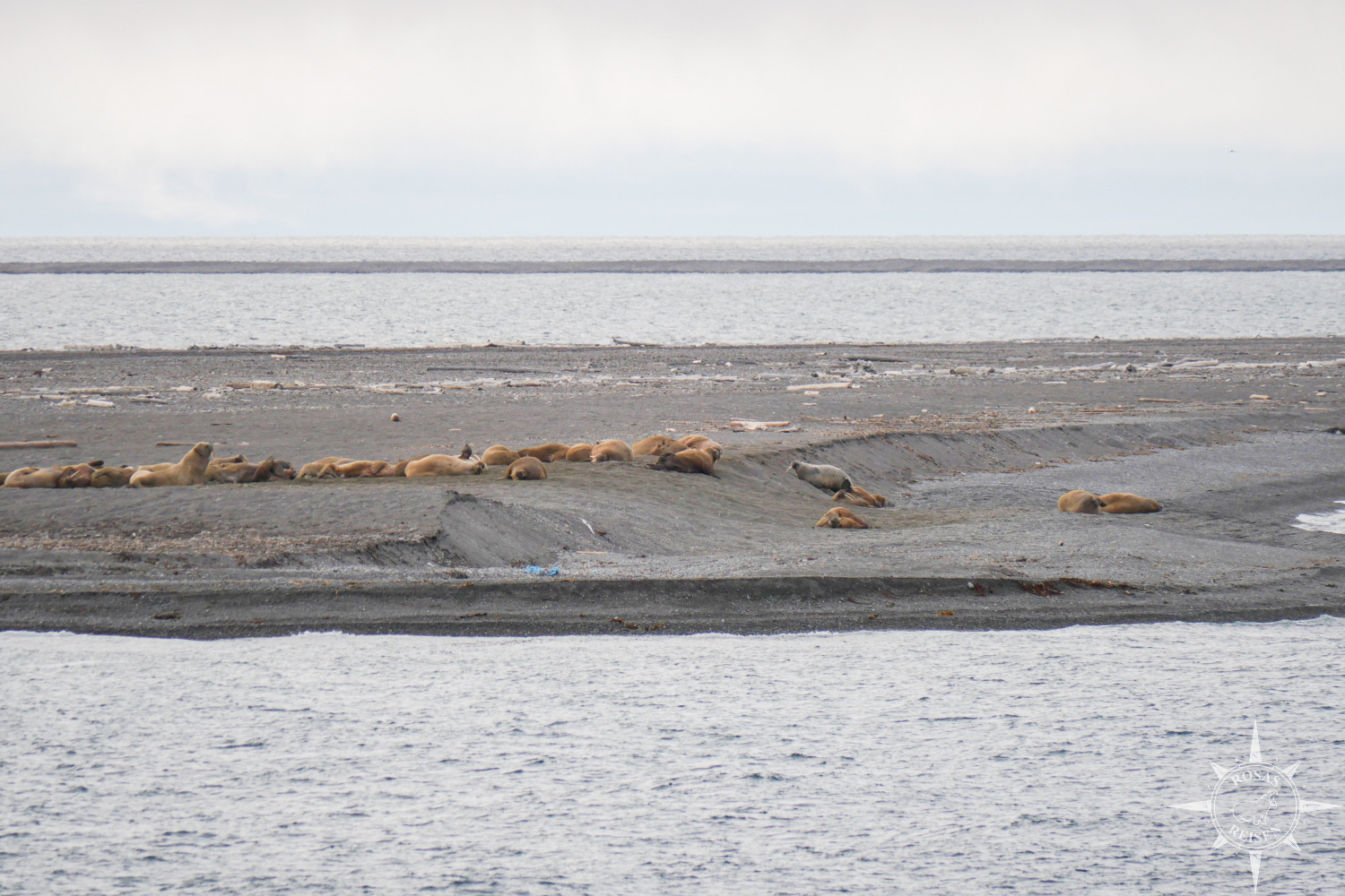 Wir können die Insel diesmal nur aus der Ferne bestaunen. Vom 15. Mai bis zum 15. September gilt nämlich ein Mindestabstand von 300 Metern zwischen Insel und Schiff. Daran halten wir uns natürlich und nutzen fleißig unsere Ferngläser, während wir ganz langsam die Insel passieren.