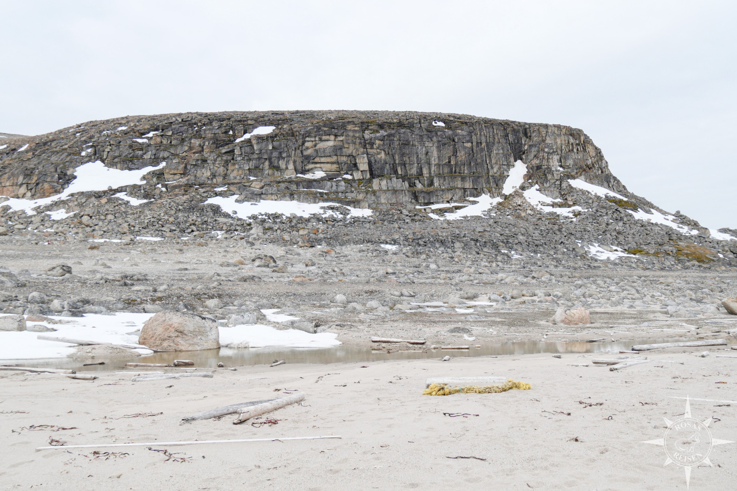 Phippsøya, die größte der Sjuøyane, erstreckt sich über rund 22 km² und ist geprägt durch ihre lange, unregelmäßige Gestalt mit markant getrennten Nordwest- und Südosthälften. Der 465 m hohe Tryggve Granfjellet erhebt sich im Nordwesten, während sichim Südosten kleinere Seen wie Isvatnet und Alketjørna befinden. Mit den Zodiacs landen wir an einem feinen, durch Gezeiten geformten Sandstrand an.