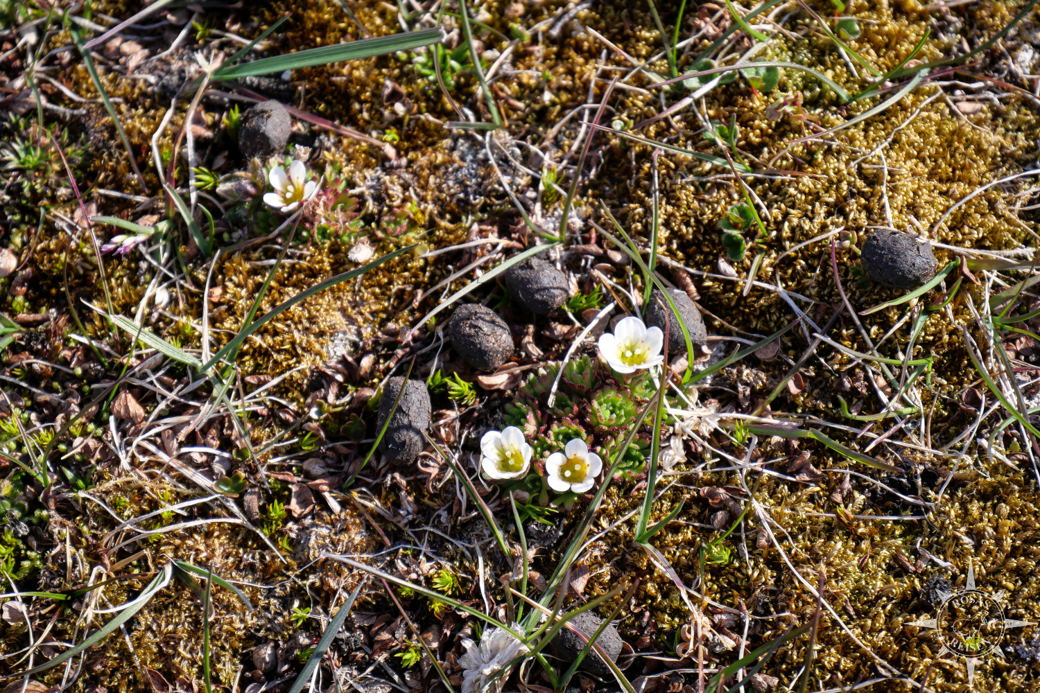 Von den Hügeln aus reicht der Blick über den Freemansund bis hinüber zur Edgeøya. Im Westen funkelt der Storfjord, und dahinter erheben sich die Gletscher der Hauptinsel Spitzbergen. Hinter der Hütte breitet sich die typische Tundra aus: kleine Seen, auf denen Gänse und andere Vögel vor sich hin dümpeln, dazwischen Hahnenfuß, Steinbrech und arktisches Hornkraut. Hier grasen dann gerne auch mal ein paar Rentiere.